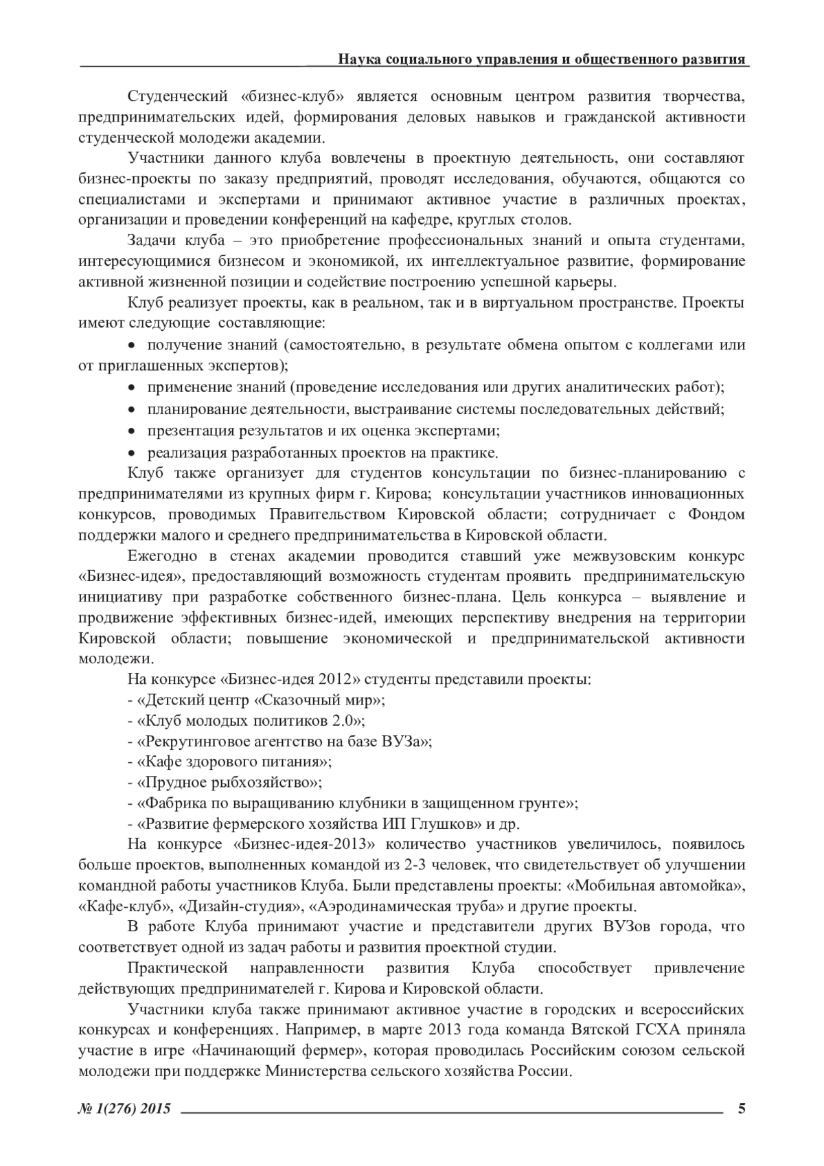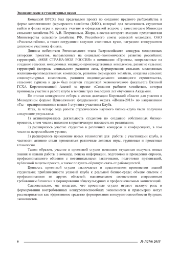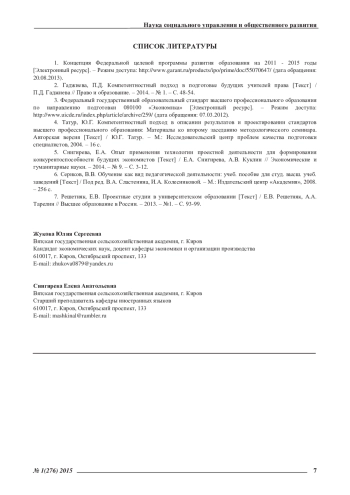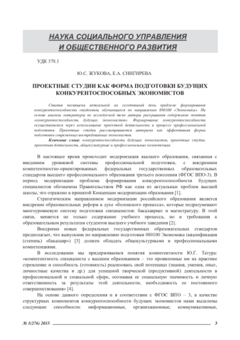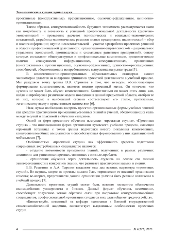Статья: ПРОЕКТНЫЕ СТУДИИ КАК ФОРМА ПОДГОТОВКИ БУДУЩИХ КОНКУРЕНТОСПОСОБНЫХ ЭКОНОМИСТОВ (2015)