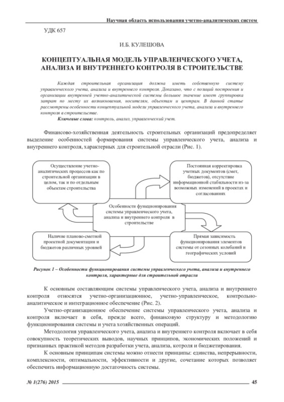 Финансово-хозяйственная деятельность строительных организаций предопределяет выделение особенностей формирования системы управленческого учета, анализа и внутреннего контроля, характерных для строительной отрасли