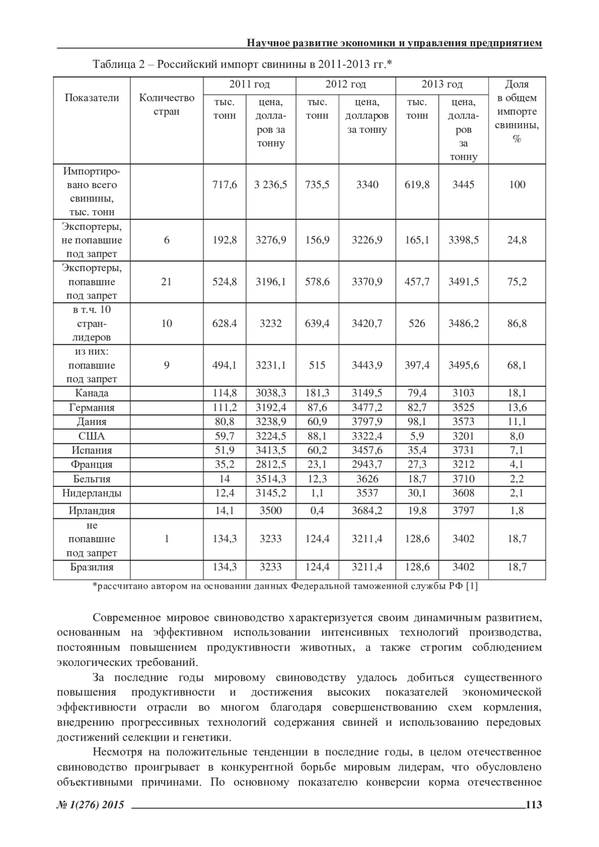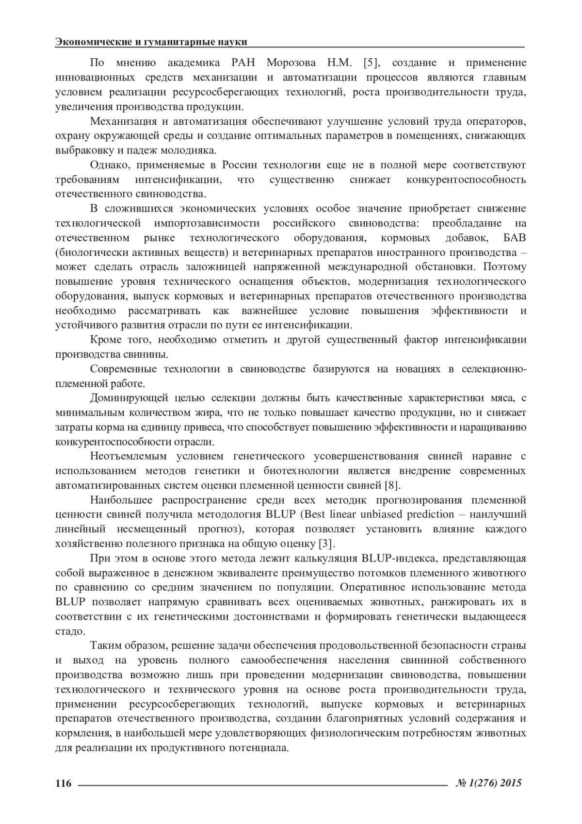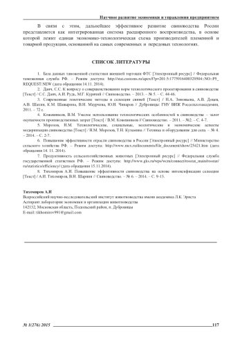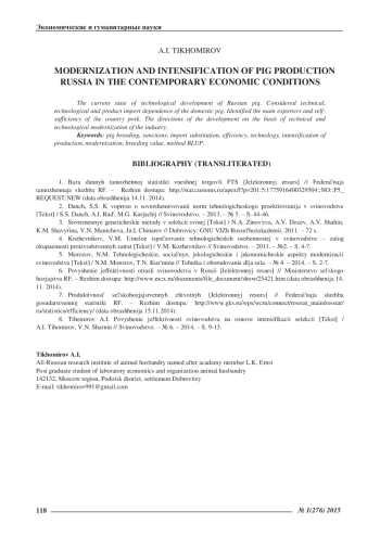 Статья: МОДЕРНИЗАЦИЯ И ИНТЕНСИФИКАЦИЯ СВИНОВОДСТВА РОССИИ В СОВРЕМЕННЫХ ЭКОНОМИЧЕСКИХ УСЛОВИЯХ (2015)