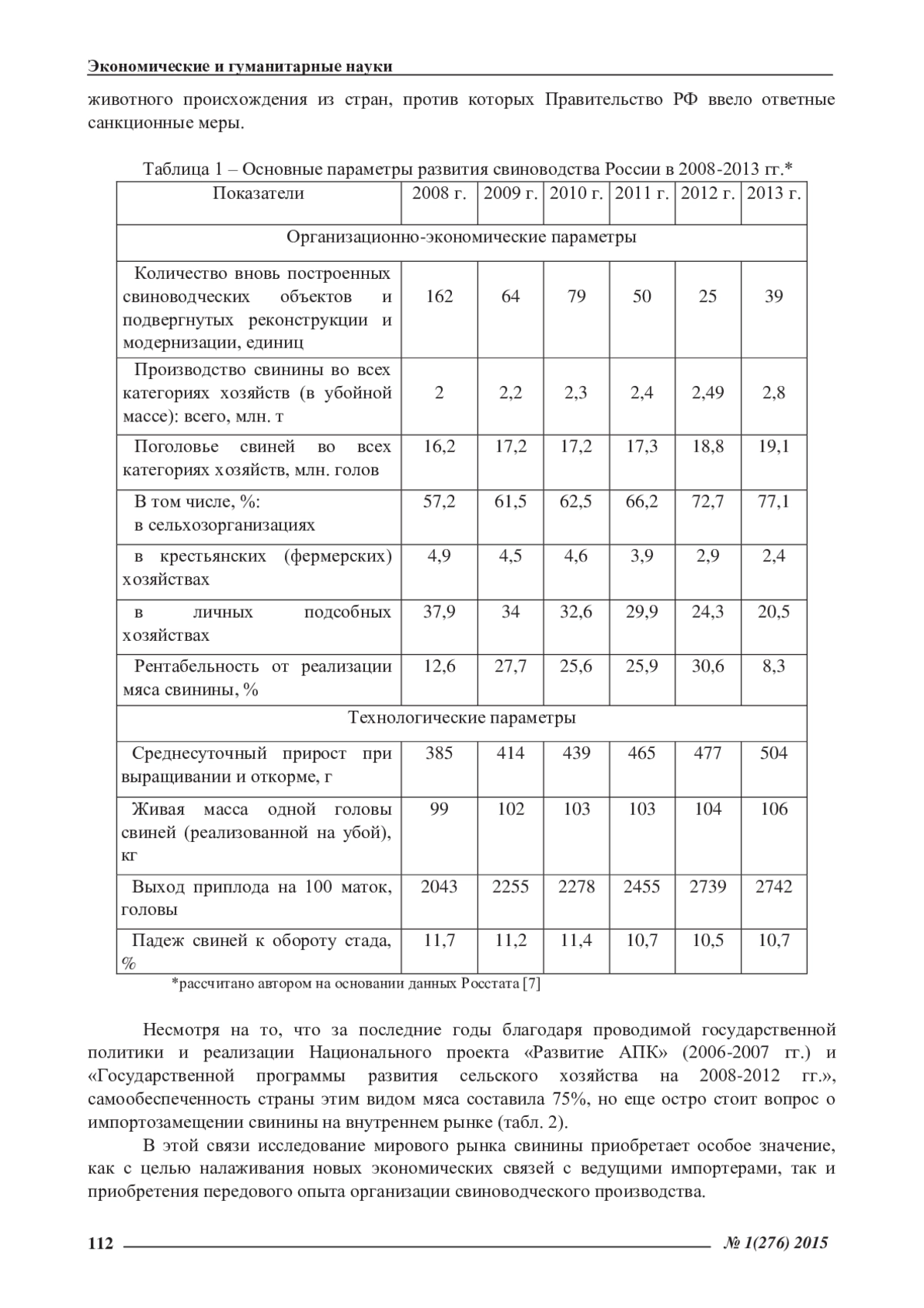 ТИХОМИРОВ А. И. МОДЕРНИЗАЦИЯ И ИНТЕНСИФИКАЦИЯ СВИНОВОДСТВА РОССИИ В СОВРЕМЕННЫХ ЭКОНОМИЧЕСКИХ УСЛОВИЯХ // ЭКОНОМИЧЕСКИЕ И ГУМАНИТАРНЫЕ НАУКИ. 2015. № 1 (276)