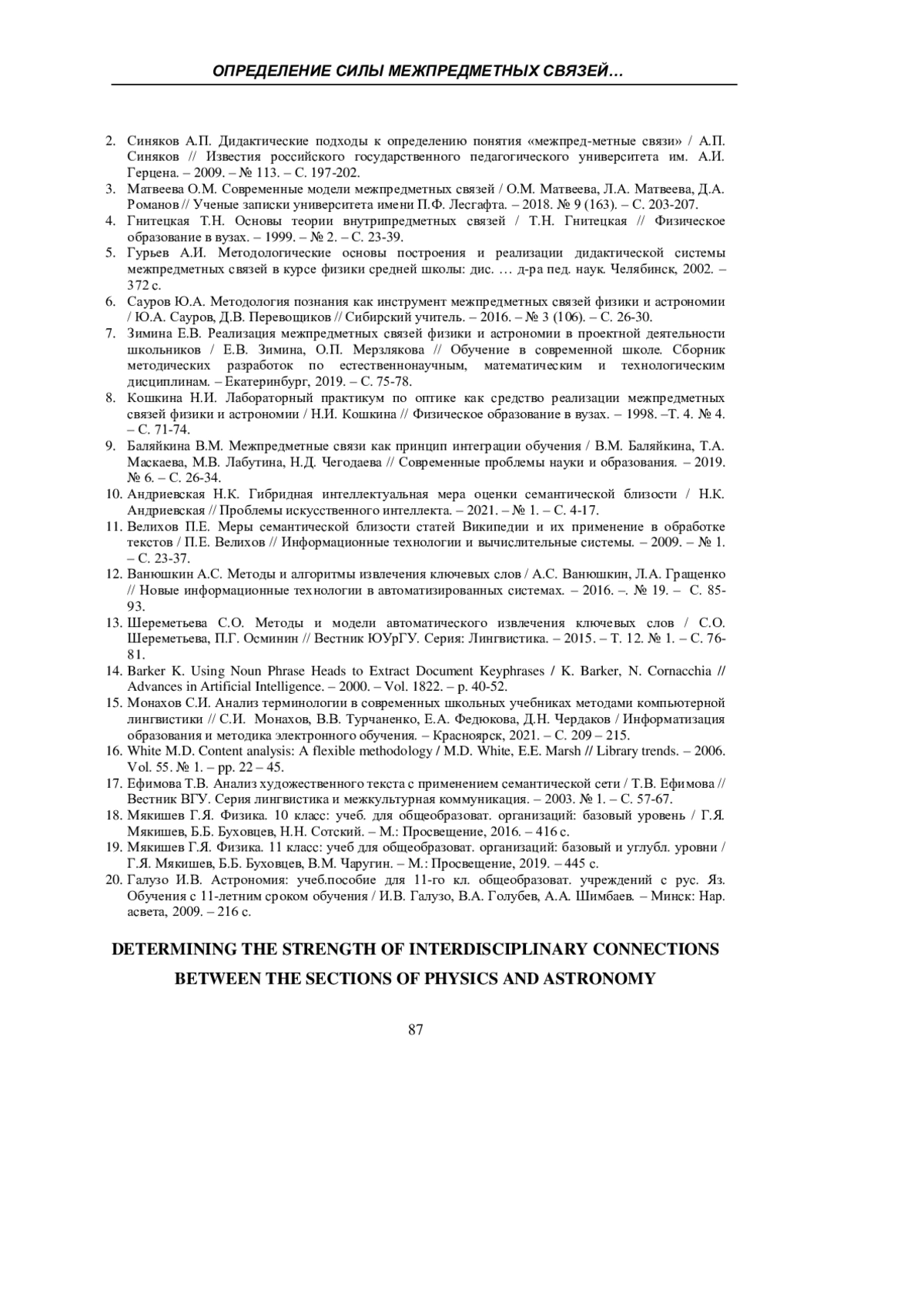2. Синяков А.П. Дидактические подходы к определению понятия “межпредметные связи” / А.П. Синяков // Известия российского государственного педагогического университета им. А.И. Герцена. - 2009. - № 113. - С. 197-202. EDN: KVRRFJ