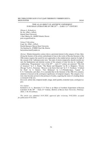 В ХХ в. категория времени подверглась значительному пересмотру как со стороны фундаментальной науки, так и в сфере искусства, что придает особую актуальность исследованиям проблемы художественной темпоральности.