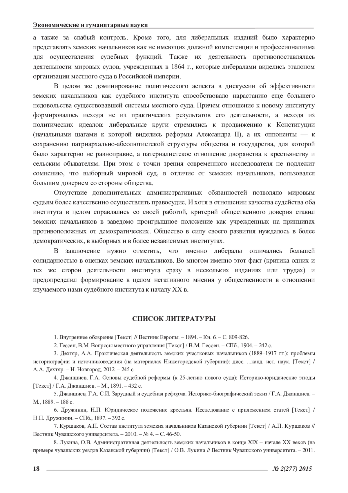 7. Куршаков, А.П. Состав института земских начальников Казанской губернии [Текст] / А.П. Куршаков // Вестник Чувашского университета. - 2010. - № 4. - С. 46-50. EDN: NBYEXT