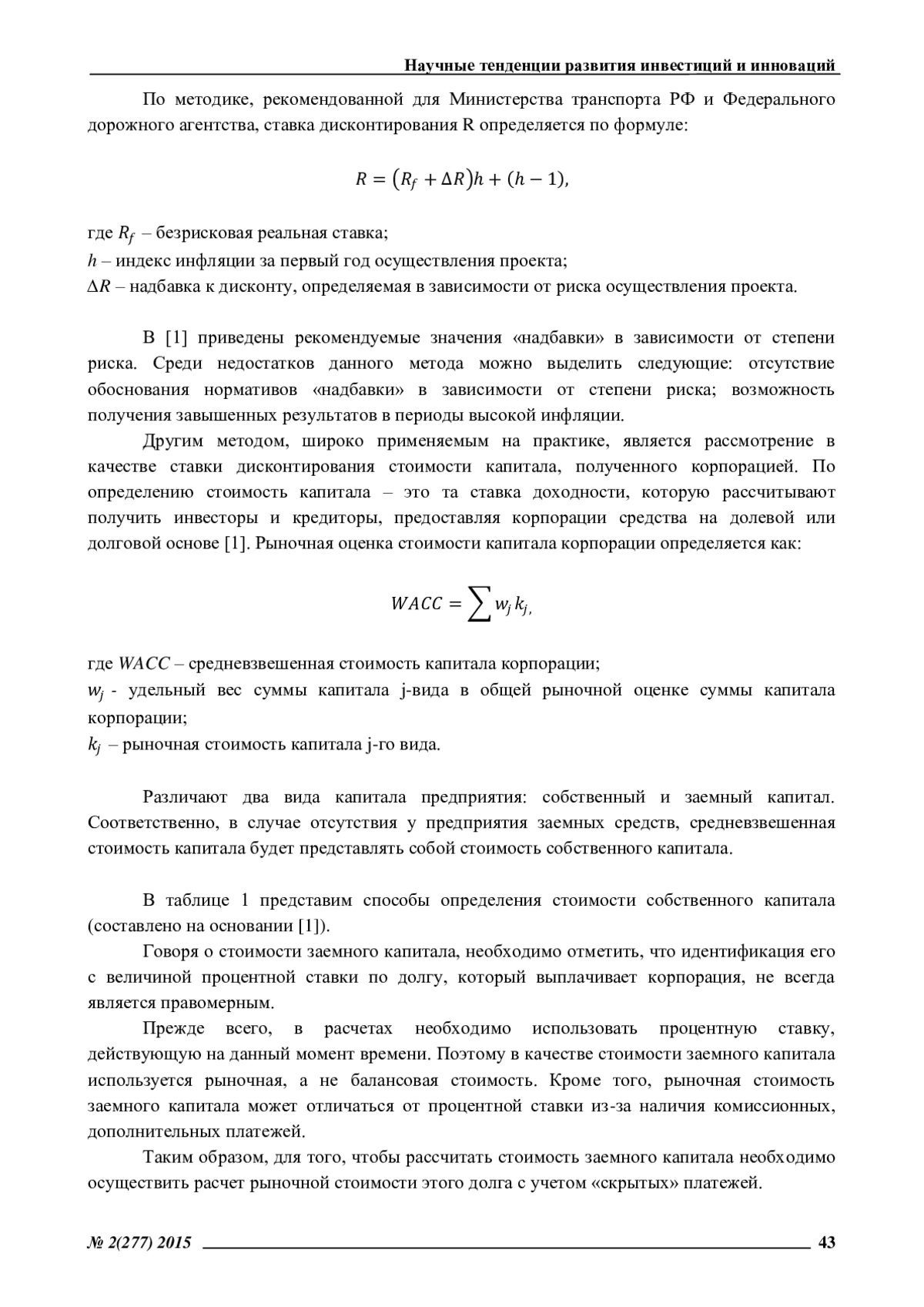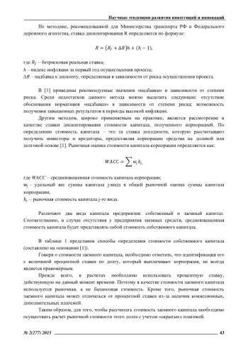 Статья: ОБОСНОВАНИЕ ВЕЛИЧИНЫ СТАВКИ ДИСКОНТИРОВАНИЯ ДЛЯ ОЦЕНКИ ИННОВАЦИОННЫХ ПРОЕКТОВ В МАШИНОСТРОЕНИИ (2015)