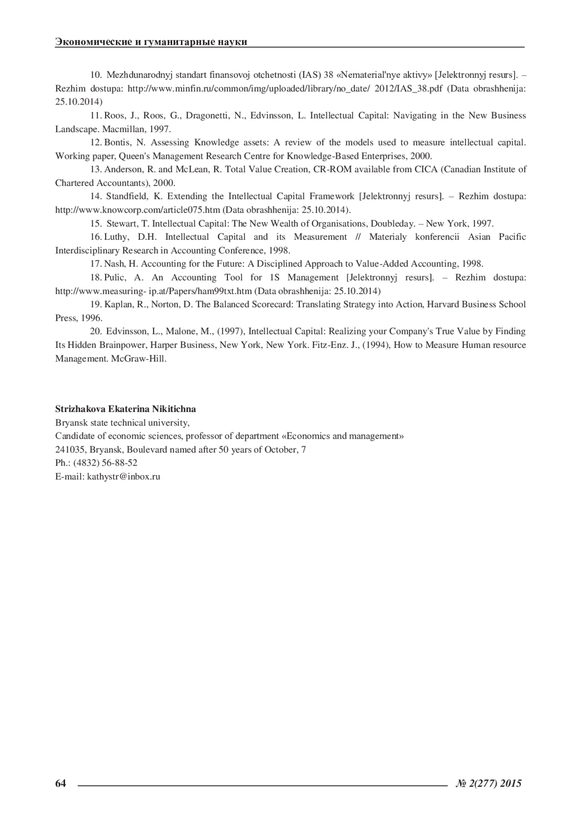 16. Luthy, D.H. Intellectual Capital and its Measurement // Материалы конференции Asian Pacific Interdisciplinary Research in Accounting Conference, 1998.
