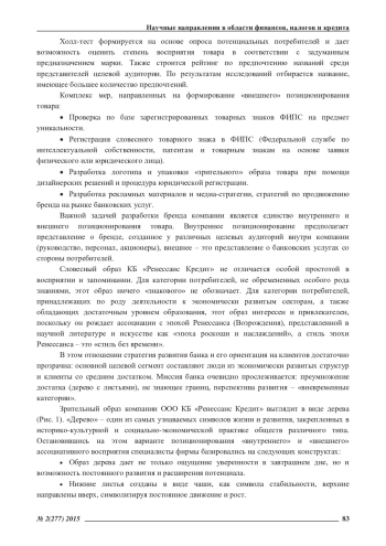 Бренд – это образ, который сложился у потребителя, уникальный и привлекательный символ, руководствуясь которым он осуществляет свой выбор. В условиях рынка банковские структуры все ожесточеннее ведут борьбу за потребителей, и в этом направлении одним из главных механизмов для привлечения клиентов является бренд. В статье рассмотрены основные особенности отечественного брендинга в банковской сфере, выведены закономерности конструирования визуального и словесного «образов» компании на примере ООО КБ «Ренессанс Кредит»