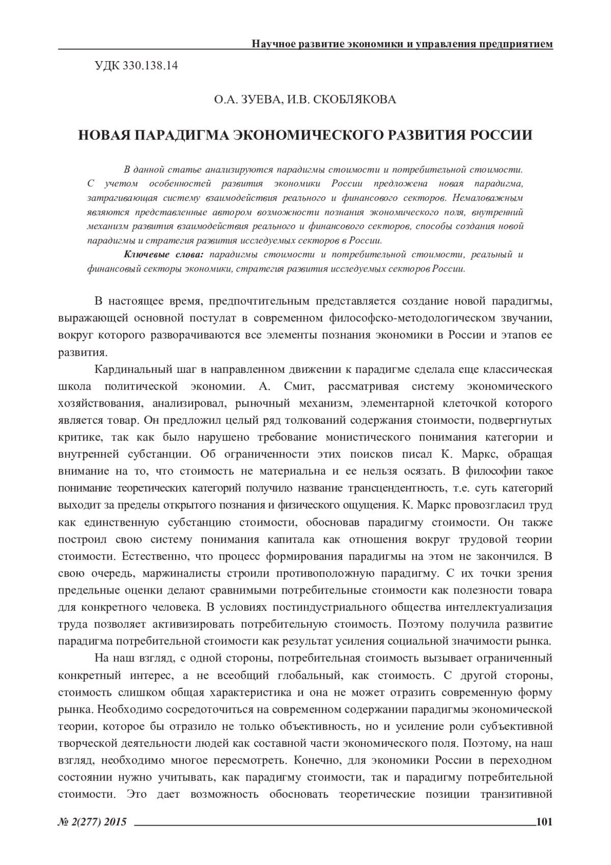В данной статье анализируются парадигмы стоимости и потребительной стоимости. С учетом особенностей развития экономики России предложена новая парадигма, затрагивающая систему взаимодействия реального и финансового секторов. Немаловажным являются представленные автором возможности познания экономического поля, внутренний механизм развития взаимодействия реального и финансового секторов, способы создания новой парадигмы и стратегия развития исследуемых секторов в России