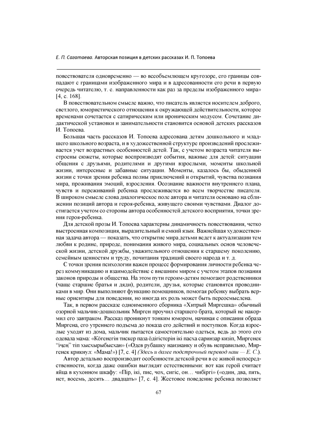 10. Челтыгмашева Л. В. Проблематика, жанровая специфика и поэтика рассказов для детей И. Топоева // 55 лет Хакасскому научно-исследовательскому институту языка, литературы и истории: материалы региональной научной конференции (Абакан, 18-20 ноября 1999 г.) / ответственный редактор B. Н. Тугужекова. Абакан, 2001. С. 37-39. Текст: непосредственный.