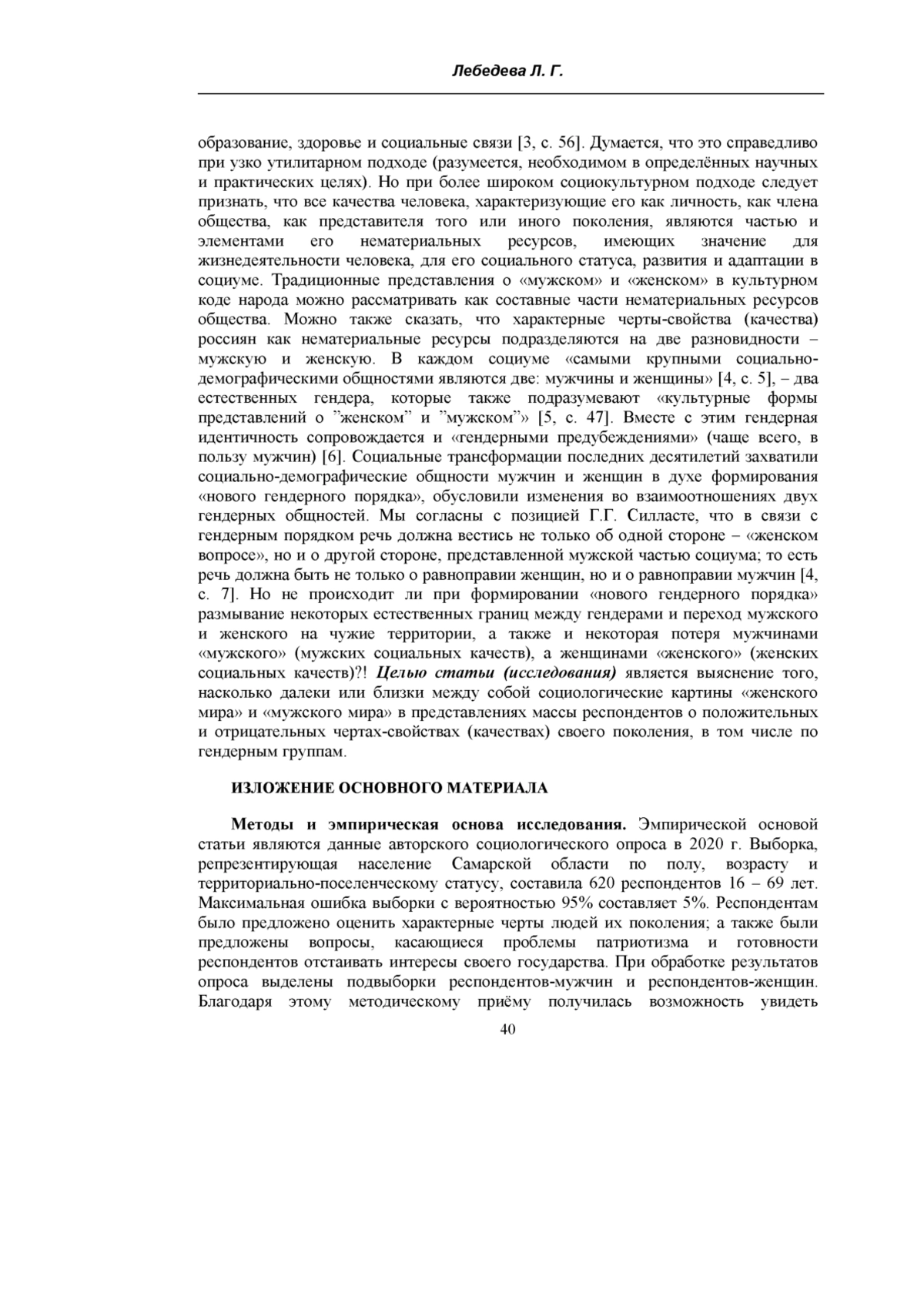 8. Лебедева Л.Г. О социокультурных характеристиках старших и младших поколений современных россиян / Л.Г. Лебедева // NOMOTHETIKA: Философия. Социология. Право. - 2023. - Т. 48, № 2. - С. 244-254. EDN: YTGTLM