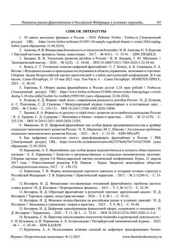1. 30 самых выгодных франшиз в России - 2024. Рейтинг Forbes / Forbes.ru [Электронный ресурс] URL: https://www.forbes.ru/biznes/515051-30-samyh-vygodnyh-fransiz-v-rossii-2024-rejting-forbes (дата обращения: 21.06.2024).