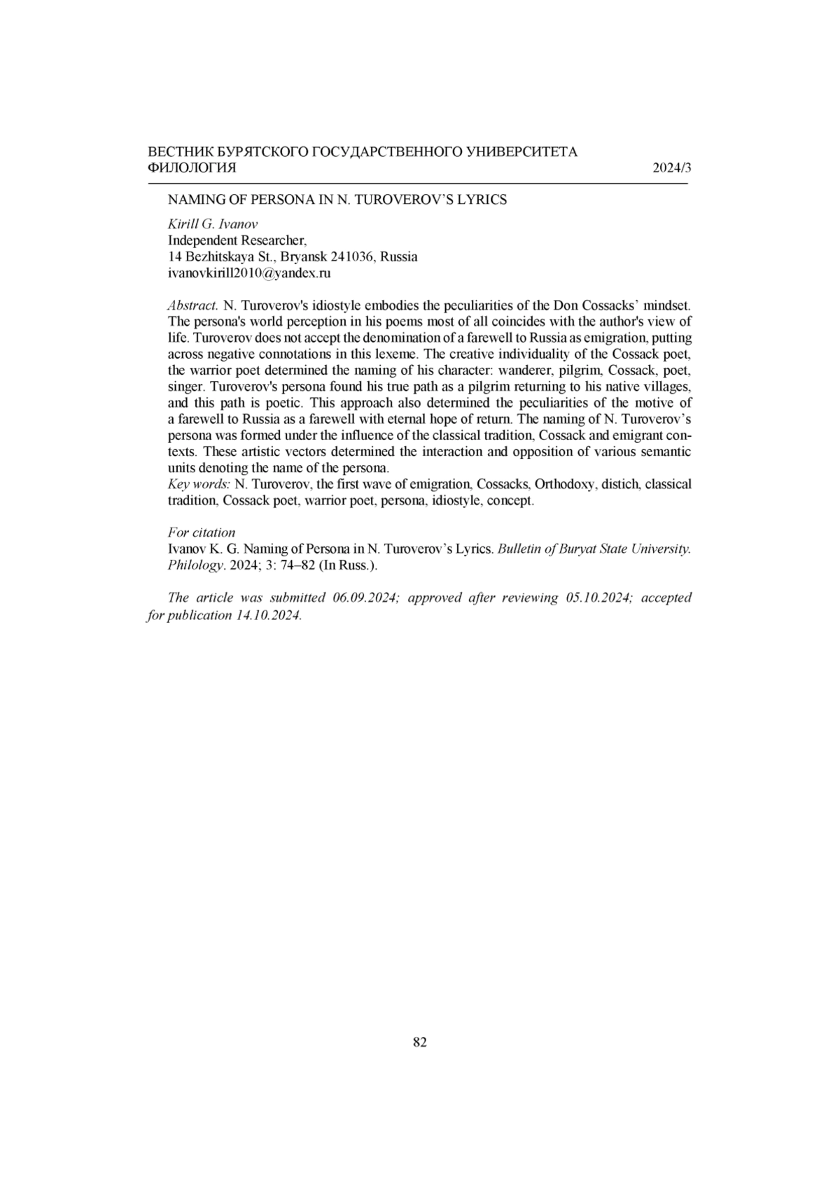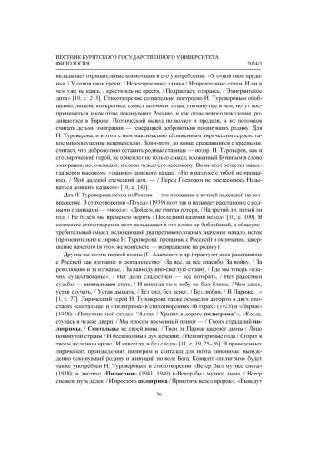 20. Кротова А. А. Особенности христианского мировосприятия в лирике Н. Н. Туроверова // Филологические науки. Вопросы теории и практики. 2017. № 9(75). Ч. 2. С. 34-36. Текст: непосредственный. EDN: ZFDRWR