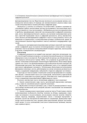4. Кононова И. В., Николаев Ф. А. Seo-оптимизированный текст как жанровая разновидность компьютерно опосредованного рекламного дискурса // Вестник ВолГУ. Серия 2. Языкознание. 2016. № 4. С. 96-103. URL: дата обращения: 15.09.2024). Текст: электронный. DOI: 10.15688/jvolsu2.2016.4.10( EDN: XDXUYB