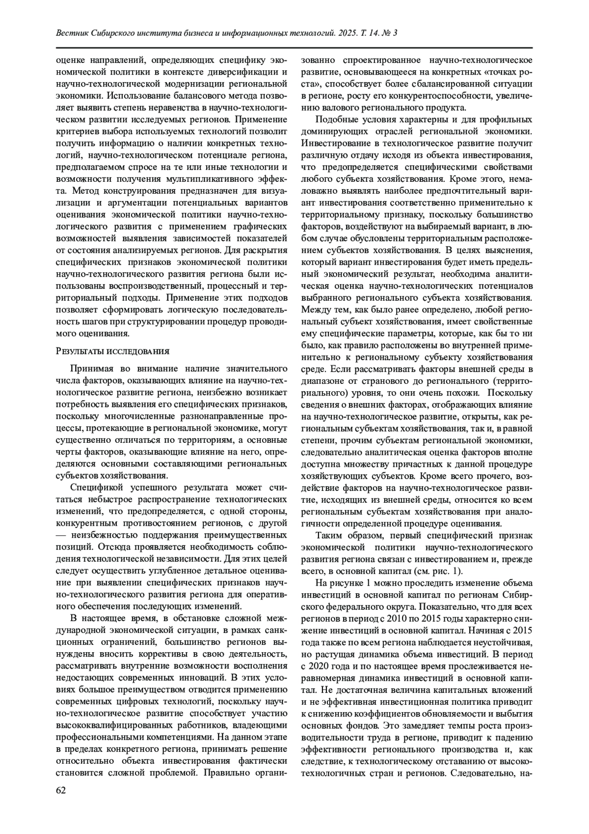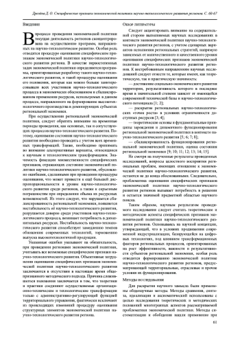 Целевая направленность проведенного исследования заключается в обосновании методического подхода к определению и обоснованию специфических признаков экономической политики научно-технологического развития региона в условиях становления технологического суверенитета. Теоретической основой исследования приняты концептуальные принципы современных теорий научно-технологического развития и теории конкурентных преимуществ. Основными методами, ориентированными на достижение результатов исследования, определены: систематизации, обобщения, балансовый, графический, конструирования и критериев выбора используемых технологий. Методологический базис исследования составили основополагающие принципы воспроизводственного, процессного и территориального подходов. К результатам теоретической направленности следует отнести выявление и обоснование специфических признаков экономической политики научно-технологического развития регионов, а также систематизация преимуществ, позволяющих проводить оценивание региональных ситуаций в соответствии с принимаемыми решениями субъектами региональной экономики. В качестве результатов практической направленности следует рассматривать аналитическое и графическое оценивание специфических признаков экономической политики научно-технологического развития региона, направленные на формирование современных системных характеристик, принимая во внимание не только сущностные параметры научно-технологических процессов, а также их содержательную составляющую. Направлением использования результатов исследования необходимо рассматривать потенциальную возможность продвижения и развития научно-технологических процессов, а также оценку научно-технологического потенциала региона.