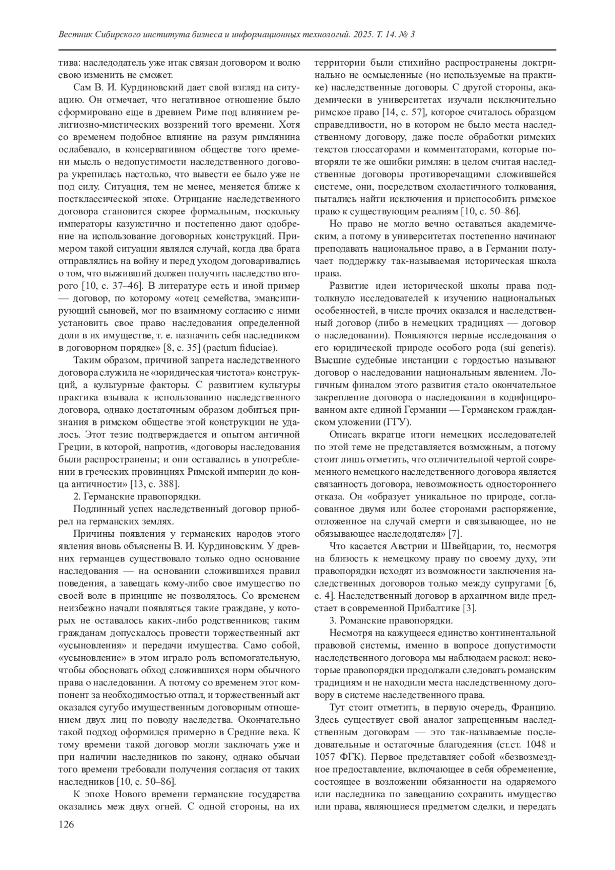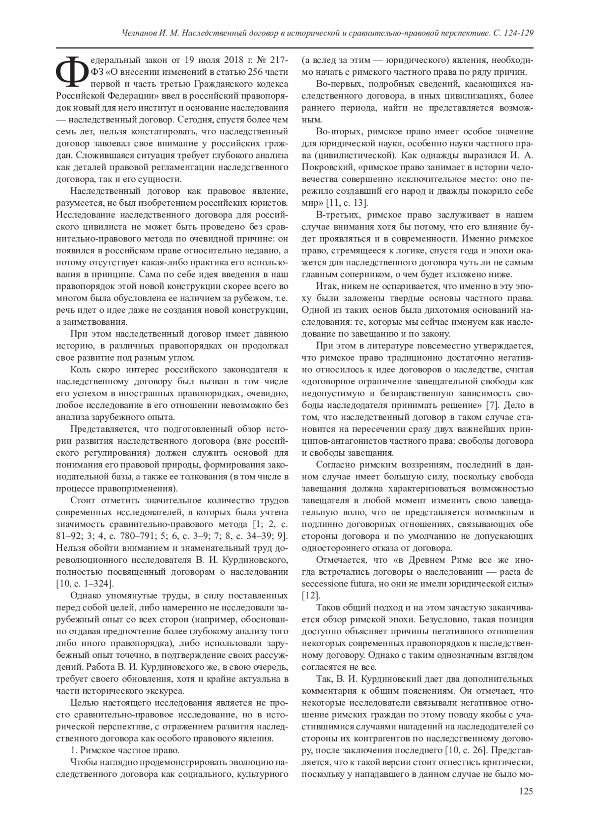 7. Лоренц Д. В. Наследственный договор: подход континентального права // Право. Журнал Высшей школы экономики. 2020. № 2. С. 105-129.