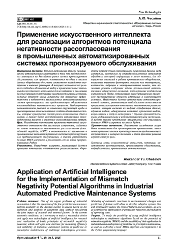 Постановка проблемы. Одна из актуальных проблем промышленной автоматизации заключается в том, что работа немногих имеющихся на Российском рынке систем прогнозируемого обслуживания, как правило, основывается на сборе и анализе данных оборудования без учета совместного воздействия внутренних и внешних факторов. В текущих экономических условиях необходим обоснованный выбор и применение новых технологий искусственного интеллекта для исследования и реализации базовых принципов потенциала негативности рассогласования, которые откроют новые горизонты для повышения эффективности и надежности промышленных автоматизированных систем прогнозируемого или предписывающего обслуживания многостадийных технологических процессов. Моделирование автоматических реакций на изменения окружающей среды и прогнозирование отказов позволит создать адаптивные системы, которые существенно снизят риски возникновения сбоев и аварий, а также будут способствовать оптимизации производственных ресурсов и снижению эксплуатационных затрат.