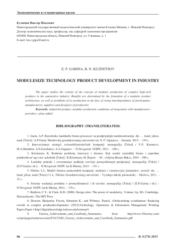 10. Knittig P.R., Shimizu S., Ballon R.J. Modularisation and Its Limitations in the Automobile Industry. from http://www.pomsmeetings.org/ConfProceedings/002/POMS_CD/Browse%20This%20CD/PAPERS/002-0201.pdf.