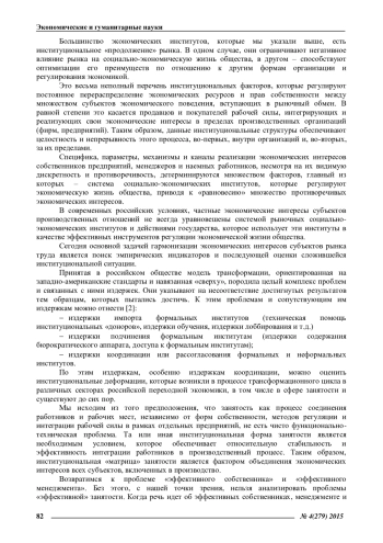 В статье особое внимание уделяется институциональному анализу экономического поведения агентов производственного поведения. Акцентируется внимание на основных моделях экономического поведения и их модификациях в современных условиях. Обосновывается, что распределение и конфигурация прав собственности внутри производственной организации определяет в конечном итоге баланс и реализацию интересов тех субъектов, которых она объединяет. В результате анализа делается вывод, что менеджмент, корпоративная собственность и занятость находятся в отношении жесткой зависимости, где каждый элемент эффективности предприятия обусловливает друг друга