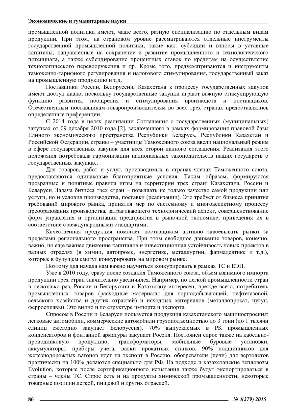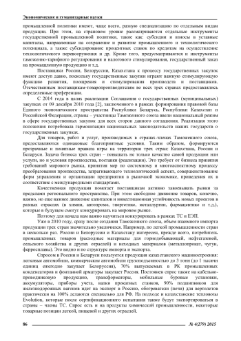 Ключевые фразы: таможенный союз, ЭКОНОМИЧЕСКАЯ ПОЛИТИКА, государственные закупки, институциональные факторы, интеграция, кооперация, специализация