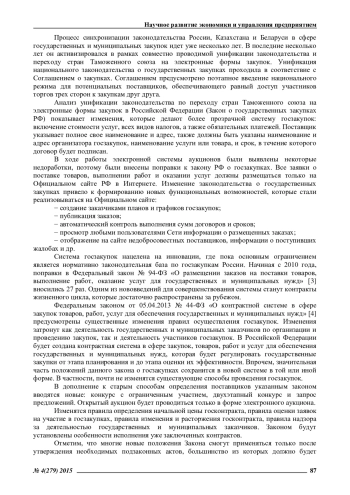 Статья: УНИФИКАЦИИ ЗАКОНОДАТЕЛЬСТВА ПО ПЕРЕХОДУ СТРАН ТАМОЖЕННОГО СОЮЗА НА ЭЛЕКТРОННЫЕ ФОРМЫ ЗАКУПОК: ОСНОВНЫЕ ВЫВОДЫ И ПРЕДЛОЖЕНИЯ (2015)