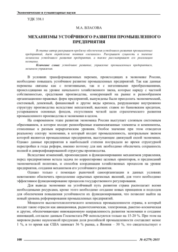 ВЛАСОВА М. А. МЕХАНИЗМЫ УСТОЙЧИВОГО РАЗВИТИЯ ПРОМЫШЛЕННОГО ПРЕДПРИЯТИЯ // ЭКОНОМИЧЕСКИЕ И ГУМАНИТАРНЫЕ НАУКИ. 2015. № 4 (279)