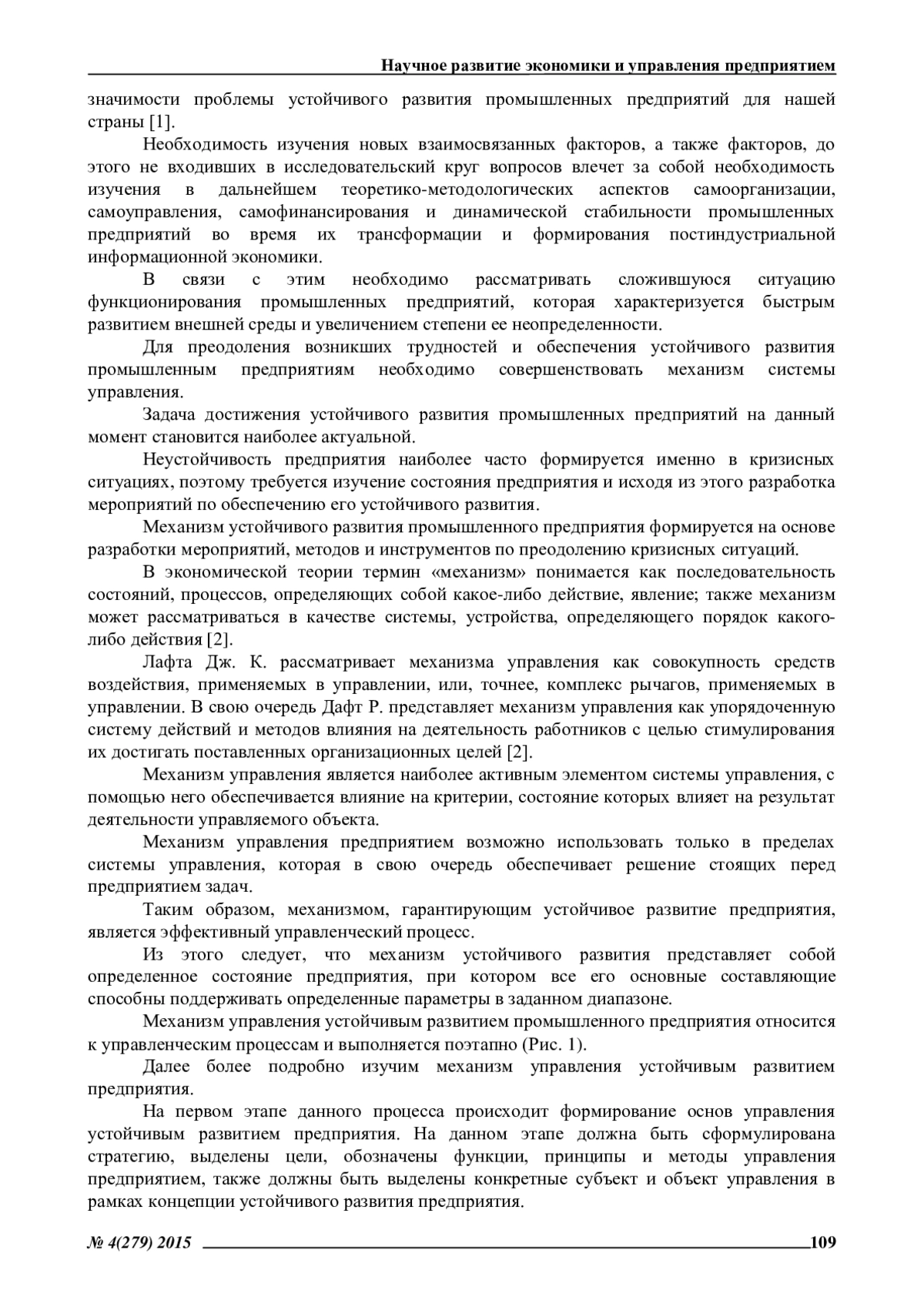 Статья: МЕХАНИЗМЫ УСТОЙЧИВОГО РАЗВИТИЯ ПРОМЫШЛЕННОГО ПРЕДПРИЯТИЯ (2015)