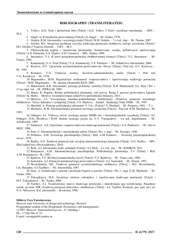 1. Волков, Ю.Е. Труд в глобальном мире /Ю.Е. Волков//Труд и социальные отношения. -2005. -№ 4.