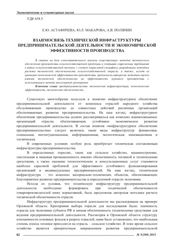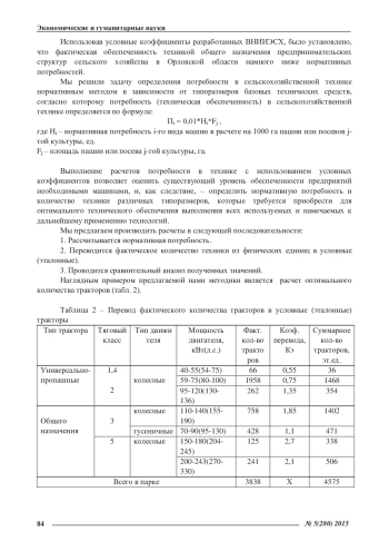 В статье на базе сопоставительного анализа существующих методик технического обеспечения производства сельскохозяйственной продукции и учитывая современные требования к видам сельскохозяйственной техники, с учетом отраслевой специфики, разработана методика расчета технической обеспеченности сельскохозяйственной отрасли, а также, исходя из критерия экономической эффективности производства, предложена авторская методика оценки влияния технической обеспеченности на эффективность зернового производства с использованием метода многомерной группировки