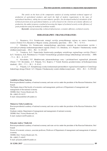 2. Докукина, И.А. Формирование стратегического управления затратами на инновационное развитие в условиях повышения конкурентоспособности региона [Текст] / И.А. Докукина, А.В. Полянин // Среднерусский вестник общественных наук. - 2014. - №2. - С. 219-225. EDN: SFPVJV