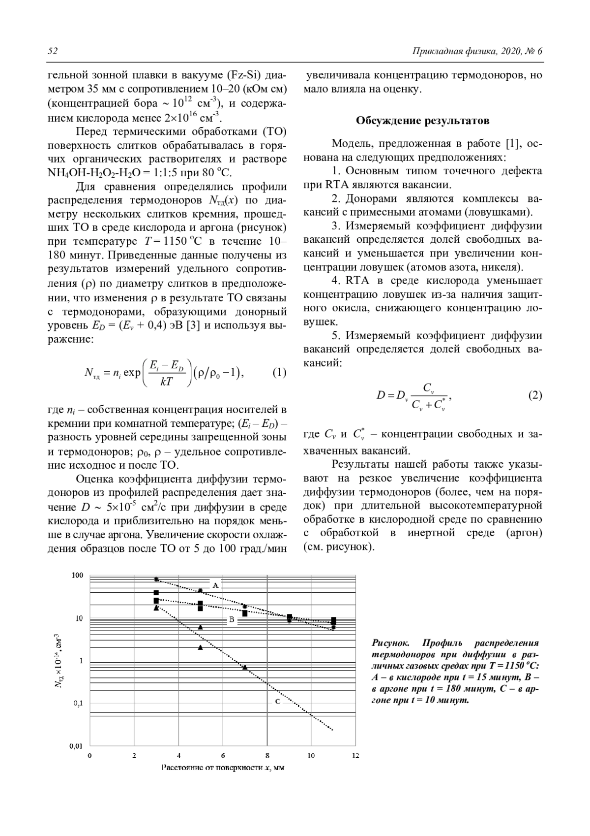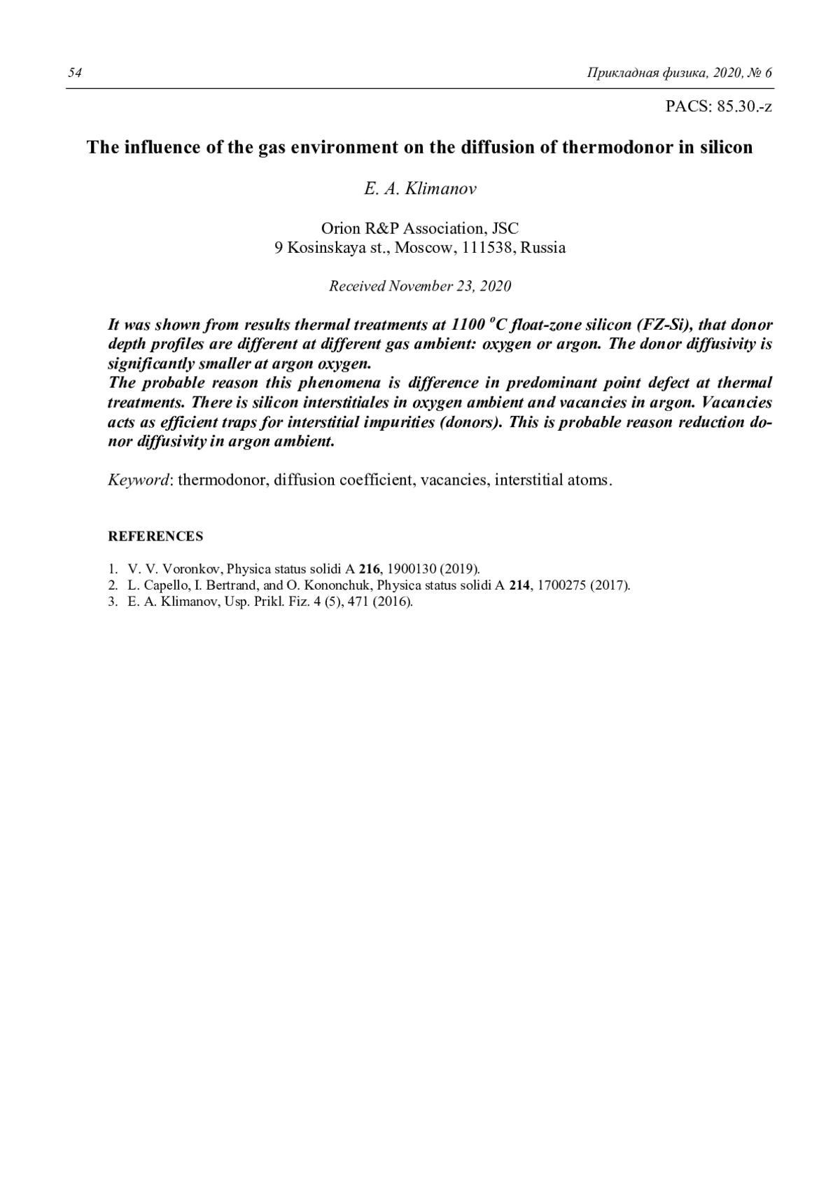 Климанов Е. А. Влияние газовой среды на диффузию термодоноров в кремнии 51