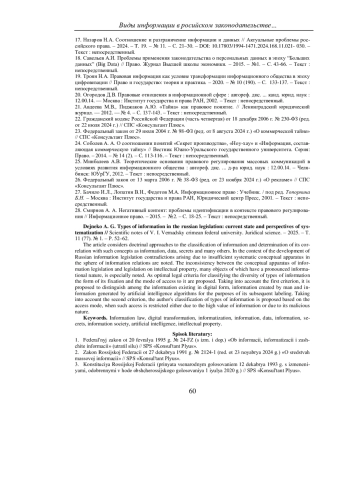 Статья: ВИДЫ ИНФОРМАЦИИ В РОССИЙСКОМ ЗАКОНОДАТЕЛЬСТВЕ: СОВРЕМЕННОЕ СОСТОЯНИЕ И ПЕРСПЕКТИВЫ СИСТЕМАТИЗАЦИИ (2025)