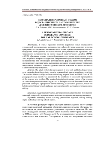 В статье отражены вопросы разработки новых инструментов и технологий дистанционного наставничества в сфере обучения вождению, а именно программы дистанционного наставничества на основе персонализированного подхода. Определена необходимость его использования для проектирования программы дистанционного наставничества на основе моделей педагогического дизайна СМАРТ и 4C/ID, обоснованы условия успешной реализации программы, представлены результаты разработки авторского содержания программы как средства оптимизации процесса наставничества при организации дистанционного формата. Разработана программа дистанционного наставничества выпускников автошкол, которая поможет поддержать выпускников автошкол, повысить уровень навыков вождения и степень готовности к самостоятельному вождению.