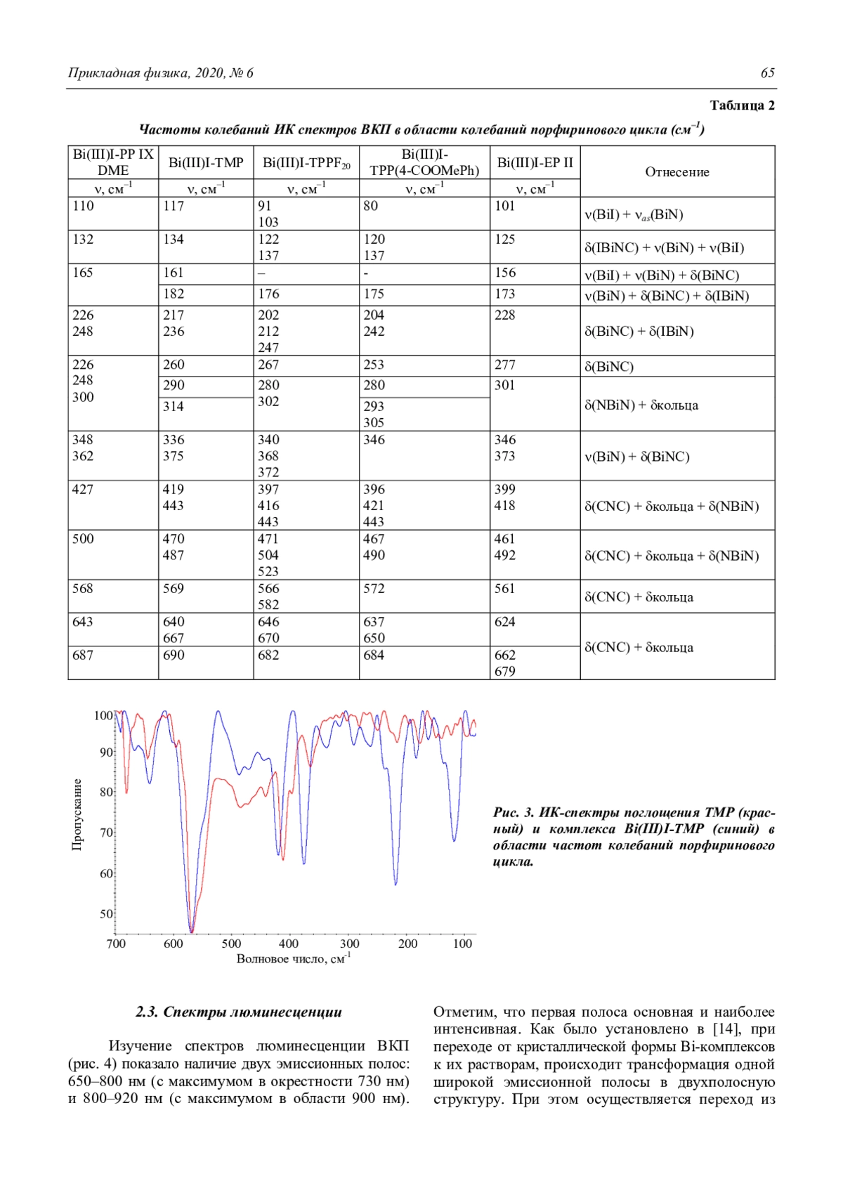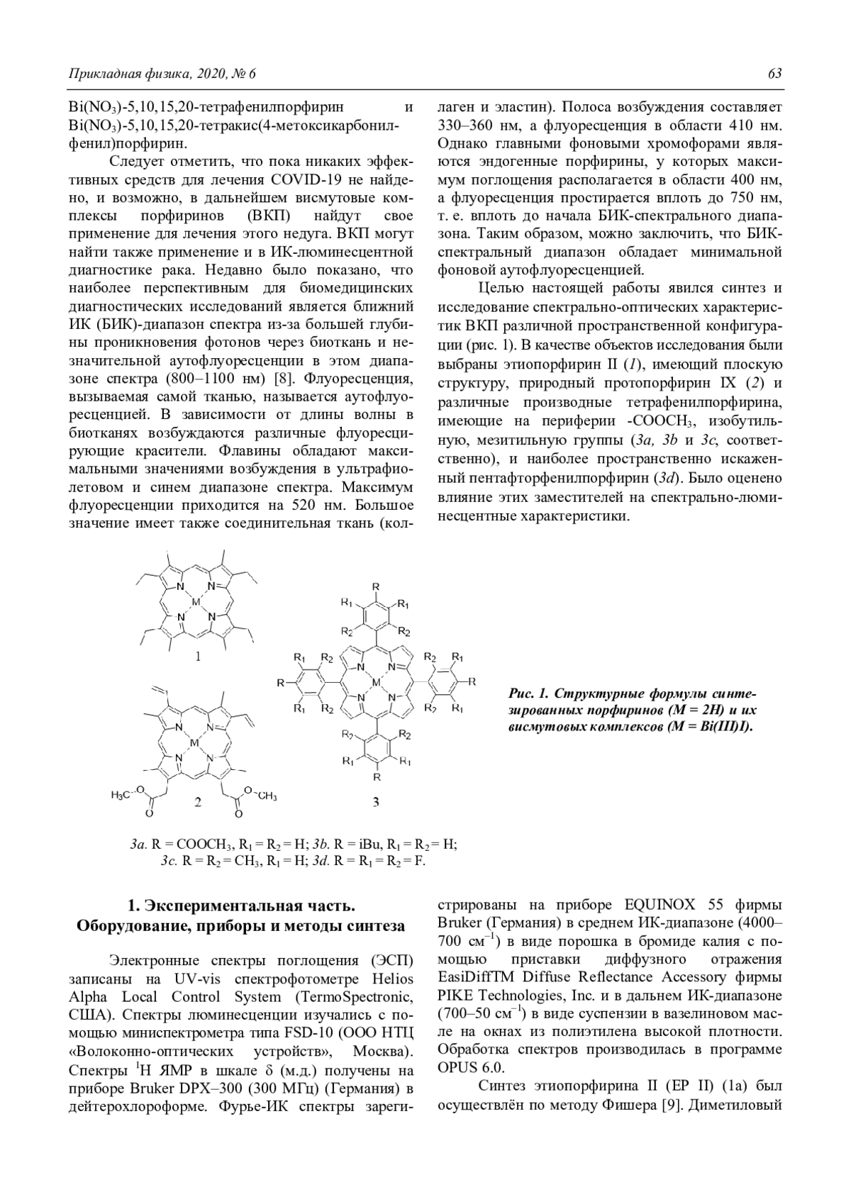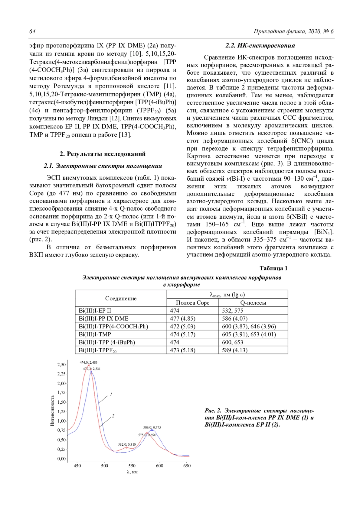 Ключевые фразы: висмутовые комплексы, порфирины, спектральные характеристики, ик-люмине- сценция, спектры поглощения, коронавирусная инфекция