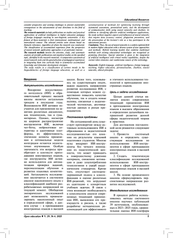 22. Liu H., Li Y., Luo W. Artificial Intelligence in English Language Teaching: CiteSpace-based Visualisation and Analysis // Proceedings of the 3rd International Conference on Education, Language and Art (ICELA 2023). 2024. С. 120-131.