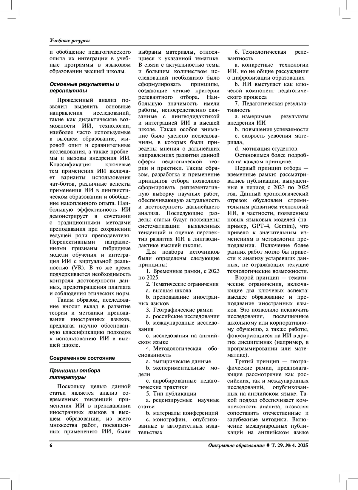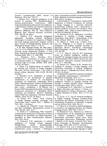 25. Крылова Е.А. Использование технологий искусственного интеллекта в преподавании иностранных языков в высшей школе // Вестник Томского государственного педагогического университета. 2025. № 2 (238). С. 105-115.