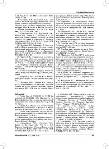 Заключение. Использование средств вычислительной техники и ее программного обеспечения в общем образовании постоянно меняет направление вектора своего развития. От восторженных ожиданий до законодательного запрета использования «…средств подвижной радиотелефонной связи во время проведения учебных занятий при освоении образовательных программ начального общего, основного общего и среднего общего образования…» [1]. Надеемся, что к средствам вычислительной техники это относится лишь в части их использования в режиме «подвижной радиотелефонной связи». На все же остальные случаи, включая работу с системами искусственного интеллекта, запрет не распространяется. Именно здесь и следует ожидать наибольших успехов.