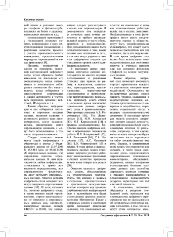 19. Черемисина Е.Н., Кирпичева Е.Ю., Токарева Н.А. и др. Цифровые следы: влияние на IT-образование и цифровую трансформацию // Физика элементарных частиц и атомного ядра. 2024. Т. 55. № 3. С. 519.