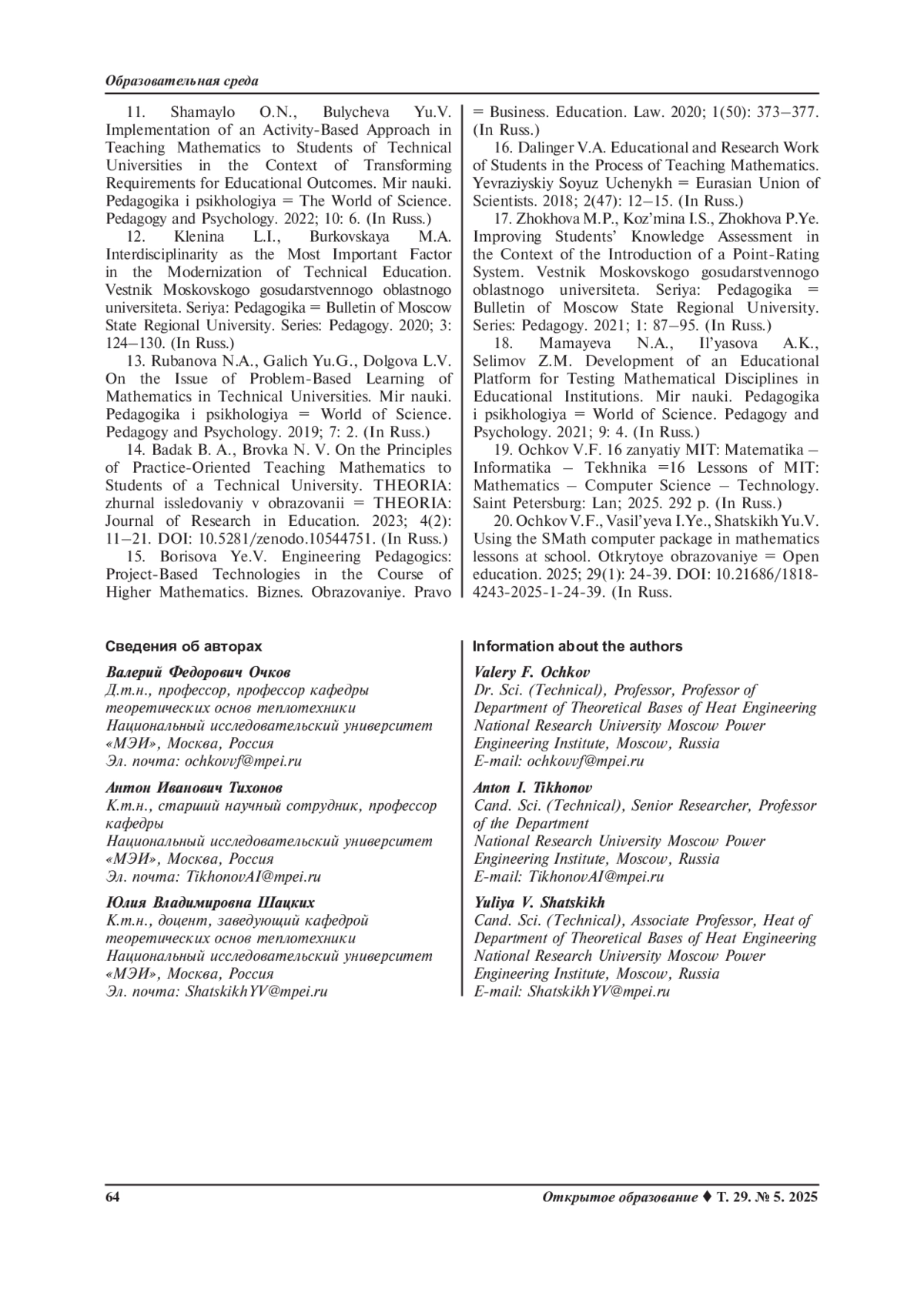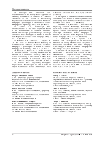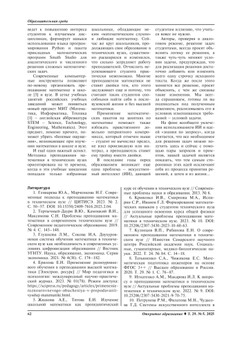 Заключение. Рассмотренный в статье образовательный подход МИТ позволяет широко использовать современные информационные и цифровые технологии для изучения высшей математики в вузах. Данный подход ведет к повышению интереса студентов к изучаемым дисциплинам, формирует навыки использования языка программирования Python и пакета прикладных математических программ Smath Studio для аналитического и численного решения сложных математических задач.