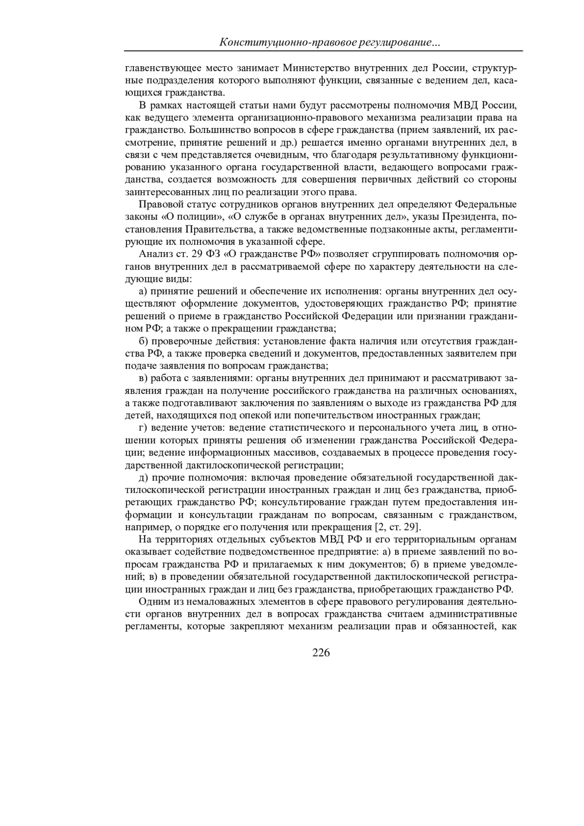 Статья: КОНСТИТУЦИОННО-ПРАВОВОЕ РЕГУЛИРОВАНИЕ ДЕЯТЕЛЬНОСТИ ОВД, КАК ОРГАНОВ, ВЕДАЮЩИХ ДЕЛАМИ О ГРАЖДАНСТВЕ, НА СОВРЕМЕННОМ ЭТАПЕ (2025)