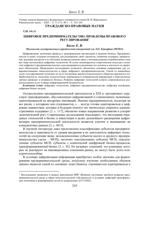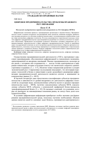 Осуществление предпринимательской деятельности в ХХI в. претерпевает серьезную трансформацию, обусловленную цифровизацией и становлением экономики, ориентированной на внедрение инноваций.