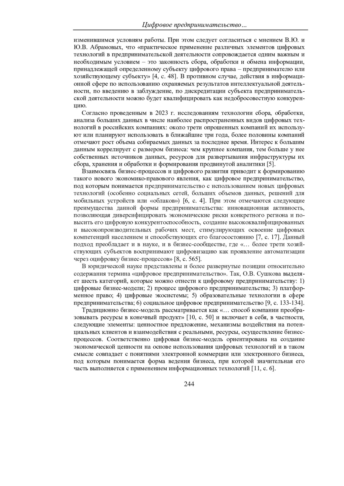 9. Сушкова О.В. Особенности применения искусственного интеллекта в сфере цифровой предпринимательской деятельности // Вестник Университета им. О.Е. Кутафина. - 2023. - №8. С. 132-138.