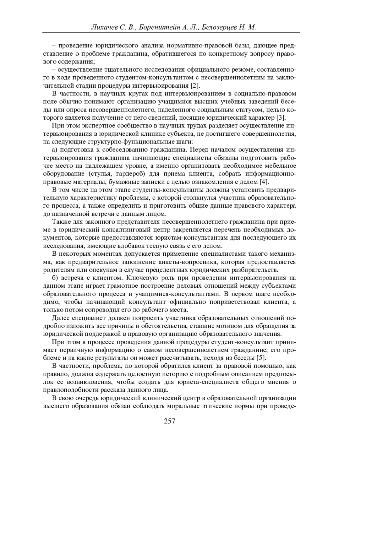 ЛИХАЧЕВ С. В., БОРЕНШТЕЙН А. Л., БЕЛОЗЕРЦЕВ Н. М. МЕТОДИКА ОБЕСПЕЧЕНИЯ НЕСОВЕРШЕННОЛЕТНИХ ГРАЖДАН ЮРИДИЧЕСКОЙ ПОДДЕРЖКОЙ В КОНСАЛТИНГОВОМ ФОРМАТЕ // УЧЕНЫЕ ЗАПИСКИ КРЫМСКОГО ФЕДЕРАЛЬНОГО УНИВЕРСИТЕТА ИМЕНИ В. И. ВЕРНАДСКОГО. ЮРИДИЧЕСКИЕ НАУКИ. 2025. ТОМ 11(77). №1