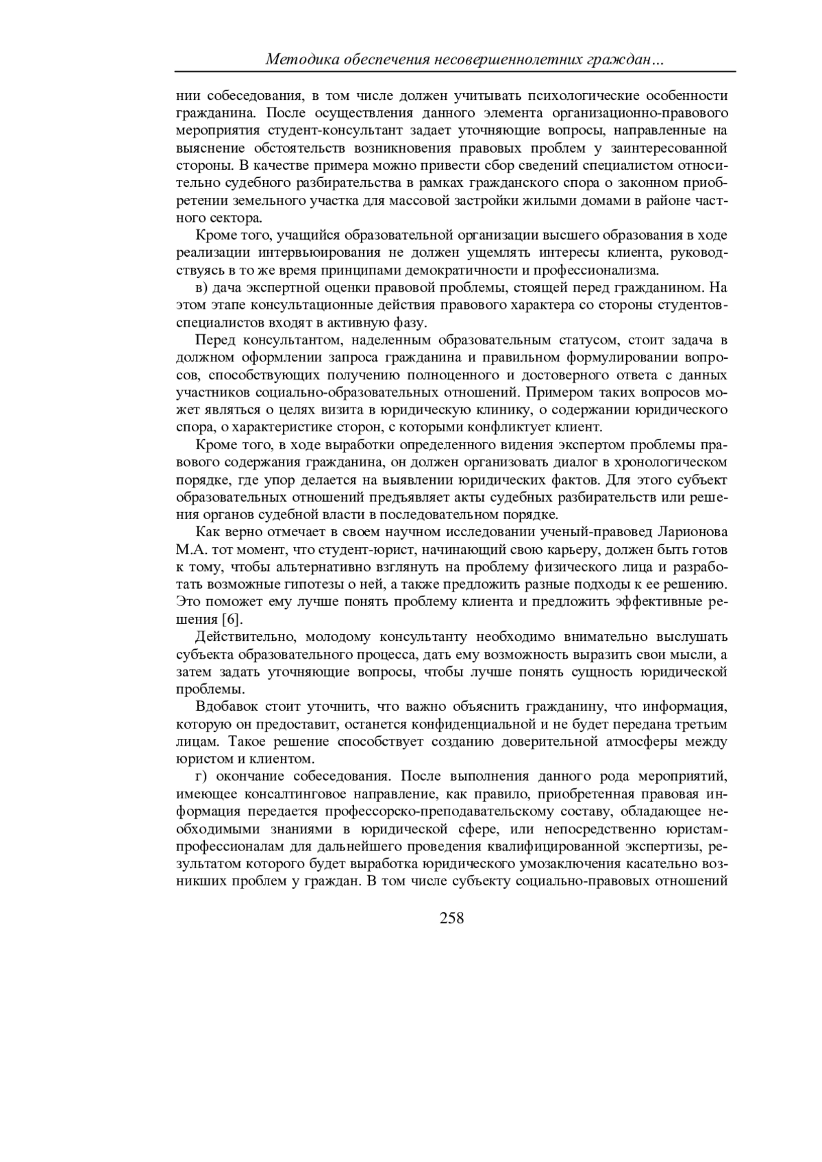 Статья: МЕТОДИКА ОБЕСПЕЧЕНИЯ НЕСОВЕРШЕННОЛЕТНИХ ГРАЖДАН ЮРИДИЧЕСКОЙ ПОДДЕРЖКОЙ В КОНСАЛТИНГОВОМ ФОРМАТЕ (2025)