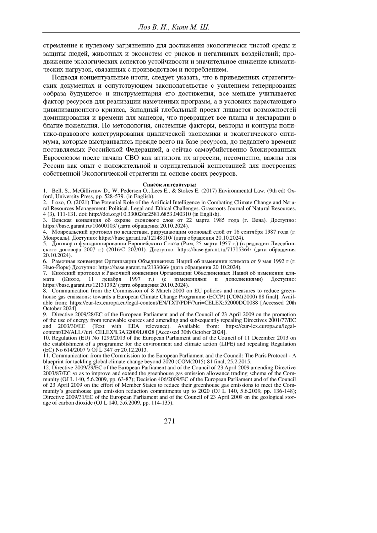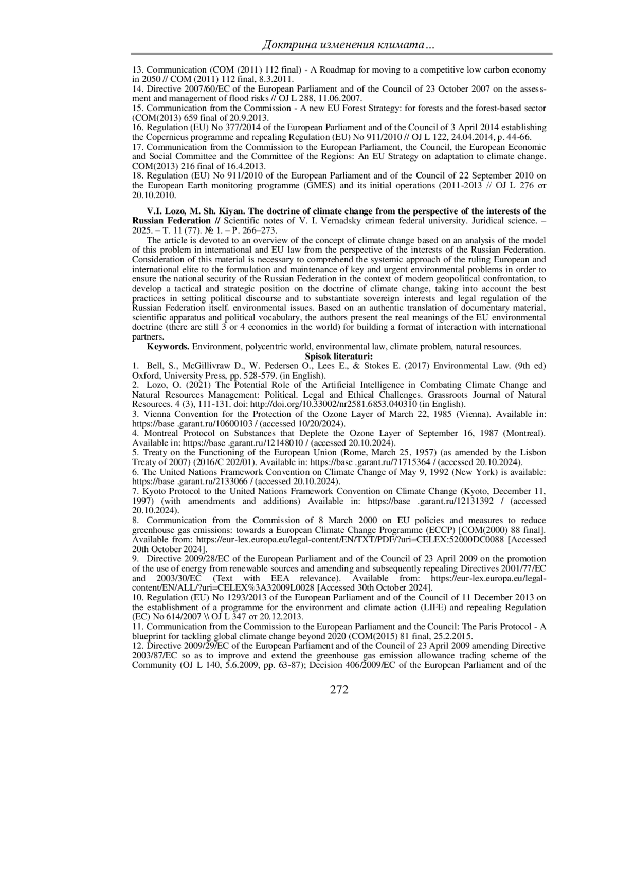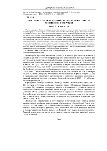 ЛОЗ В. И., КИЯН М. Ш. ДОКТРИНА ИЗМЕНЕНИЯ КЛИМАТА С ПОЗИЦИИ ИНТЕРЕСОВ РОССИЙСКОЙ ФЕДЕРАЦИИ // УЧЕНЫЕ ЗАПИСКИ КРЫМСКОГО ФЕДЕРАЛЬНОГО УНИВЕРСИТЕТА ИМЕНИ В. И. ВЕРНАДСКОГО. ЮРИДИЧЕСКИЕ НАУКИ. 2025. ТОМ 11(77). №1
