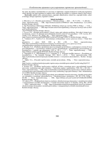 8. Костина О.В., “Проблема использования отдельных объектов авторского права, правообладатели которых неизвестны: зарубежный опыт, пути решения” // Управление наукой и наукометрия. 2024. №1. с.102-120, - Текст: непосредственный, - URL: https://cyberleninka.ru/artide/n7problemaispolzovaniya-otdelnyh-obektov-avtorskogo-prava-pravoobladateli-kotoryh-neizvestny-zarubezhnyy-opyt-puti-resheniya (дата обращения: 23.12.2024). Режим доступа: открытый. EDN: LNKZOV