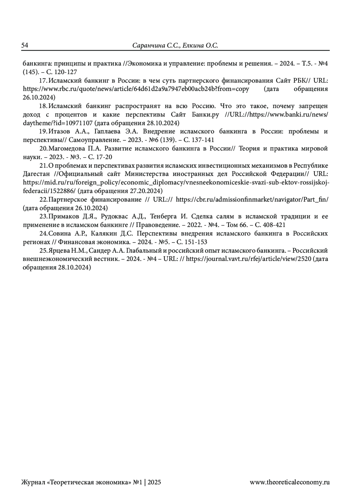 25. Ярцева Н.М., Сандер А.А. Глабальный и российский опыт исламского банкинга. - Российский внешнеэкономический вестник. - 2024. - №4 - URL: // https://journal.vavt.ru/rfej/article/view/2520 (дата обращения 28.10.2024).