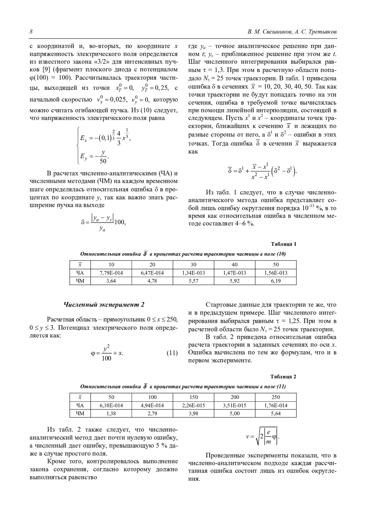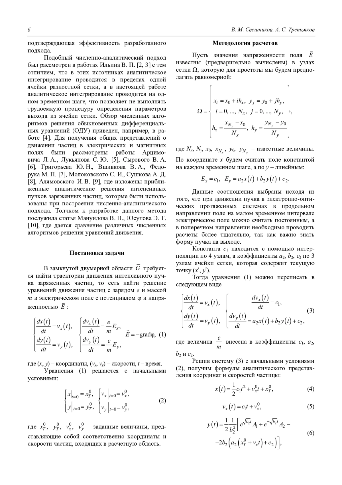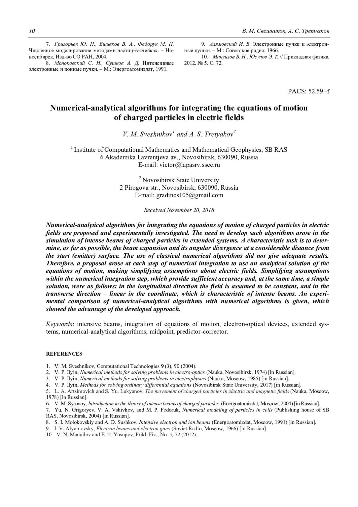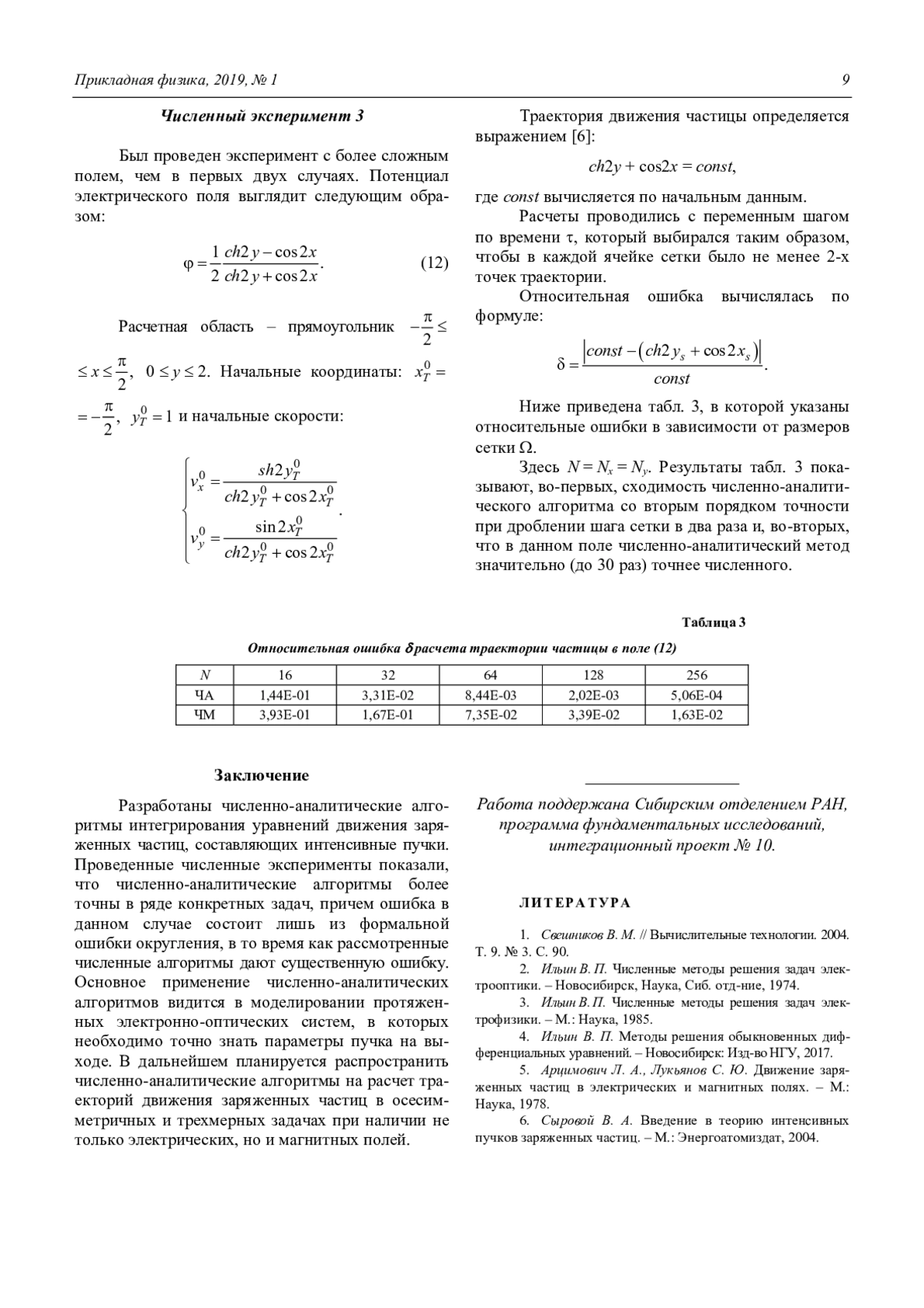 СВЕШНИКОВ В. М., ТРЕТЬЯКОВ А. С. ЧИСЛЕННО-АНАЛИТИЧЕСКИЕ АЛГОРИТМЫ ИНТЕГРИРОВАНИЯ УРАВНЕНИЙ ДВИЖЕНИЯ ЗАРЯЖЕННЫХ ЧАСТИЦ В ЭЛЕКТРИЧЕСКИХ ПОЛЯХ // ПРИКЛАДНАЯ ФИЗИКА. 2019. №1