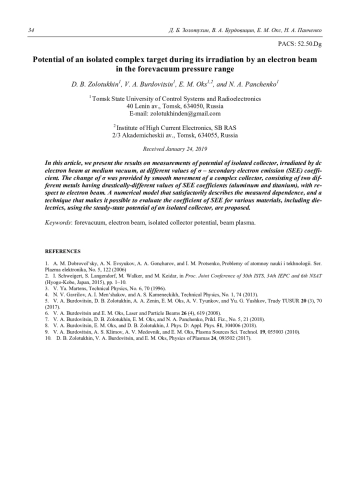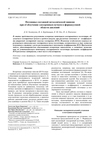 Статья: Потенциал составной металлической мишени при её облучении электронным пучком в форвакуумной области давлений (2019)
