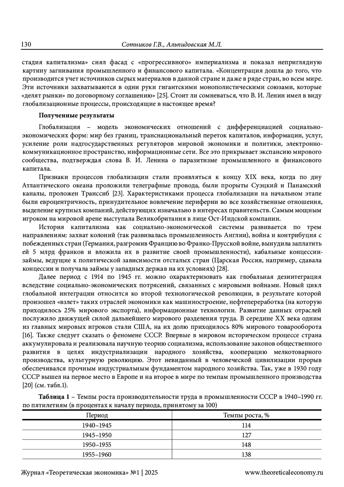 1. Альпидовская М.Л. Политическая экономия в эпоху структур-но-системного перехода: история и логика процесса // Вопросы политиче-ской экономии. - 2022. - № 2. - С.180-195.