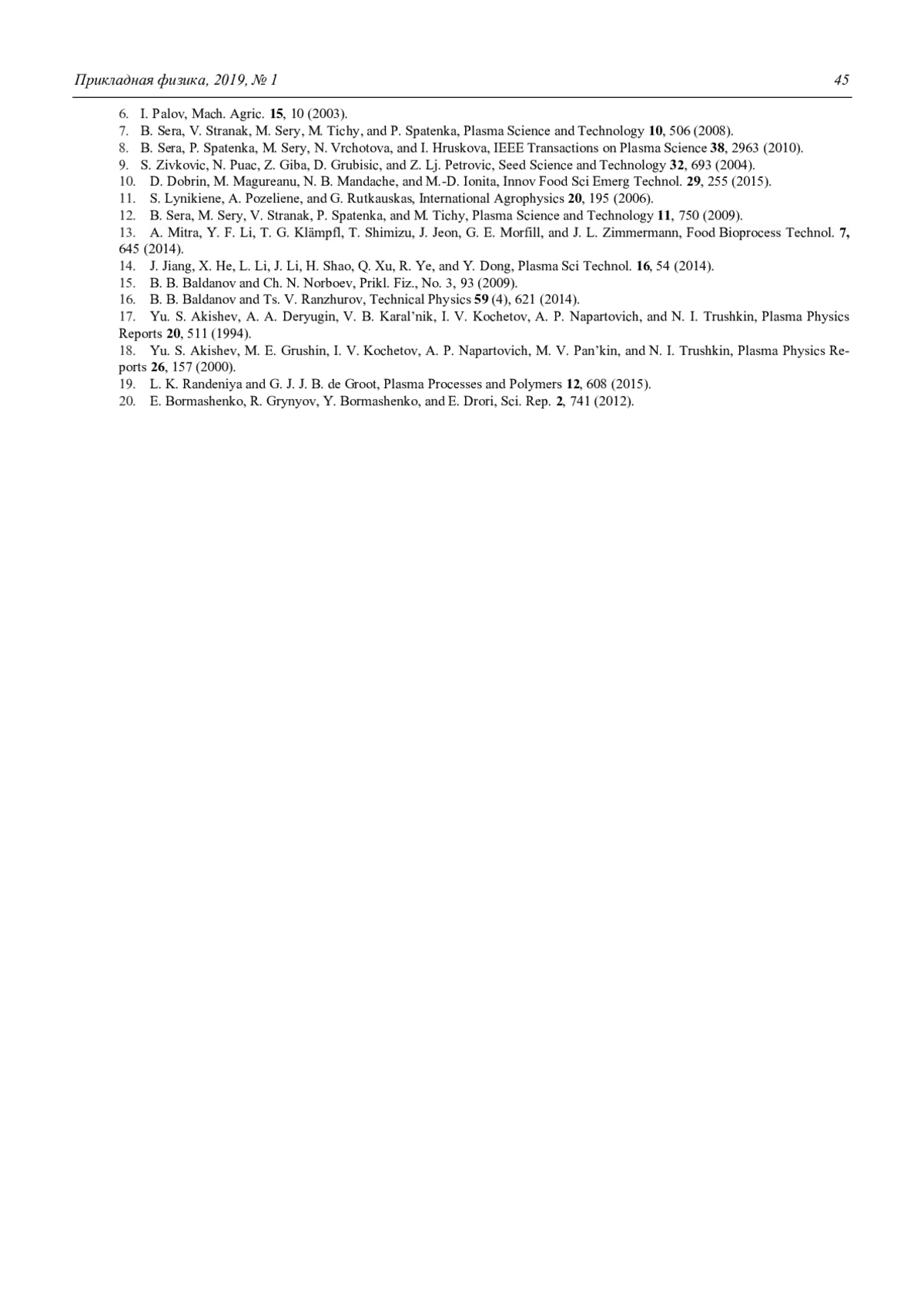 8. B. Sera, P. Spatenka, M. Sery, N. Vrchotova, and I. Hruskova, IEEE Transactions on Plasma Science 38, 2963 (2010).