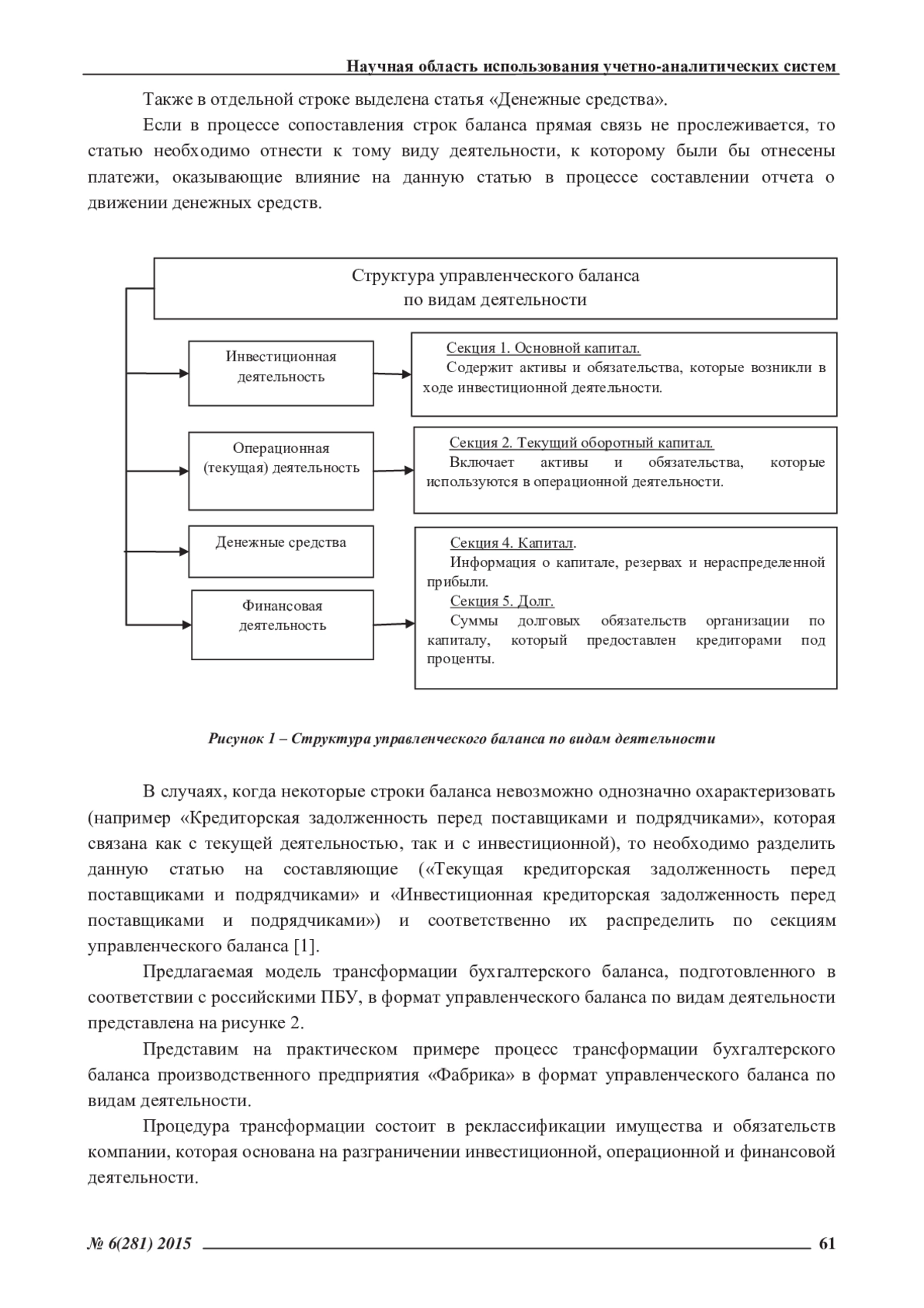 Статья: МОДЕЛЬ ТРАНСФОРМАЦИИ БУХГАЛТЕРСКОГО БАЛАНСА В ФОРМАТ УПРАВЛЕНЧЕСКОГО ОТЧЕТА ПО ВИДАМ ДЕЯТЕЛЬНОСТИ В УСЛОВИЯХ ДИВЕРСИФИКАЦИИ ПРОИЗВОДСТВА (2015)